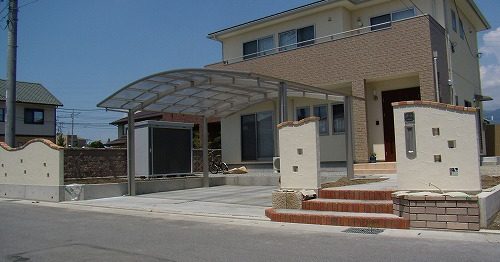 甲府市 K様邸 2011年8月施工 ●カーポート ●フェンス ●デザイン門柱 ●